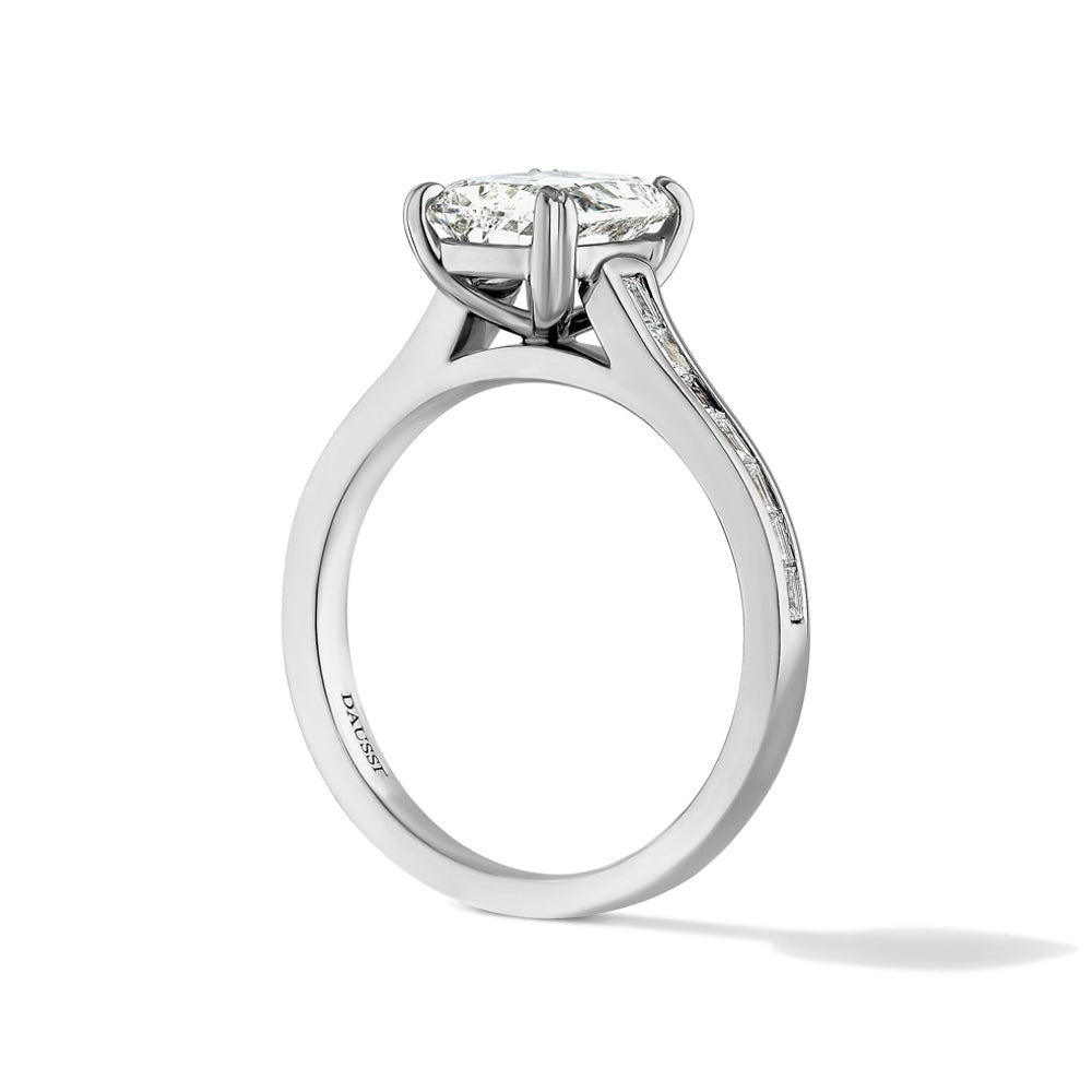 Henri Daussi Channel Set Baguette Cushion Cut Engagement Ring