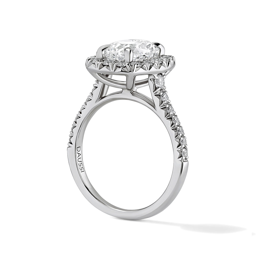 Henri Daussi Graduated Shank Halo Cushion Diamond Engagement Ring