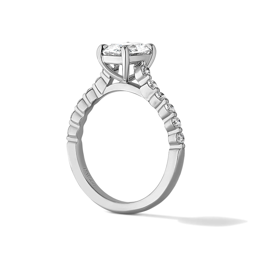 Henri Daussi 18K White Gold Cushion Cut Diamond Solitaire Ring