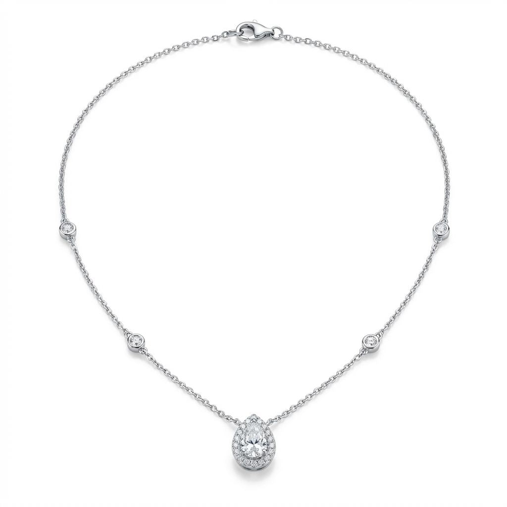 Uneek Sweet-Pea Collection Halo Pear Shaped Diamond Drop Necklace